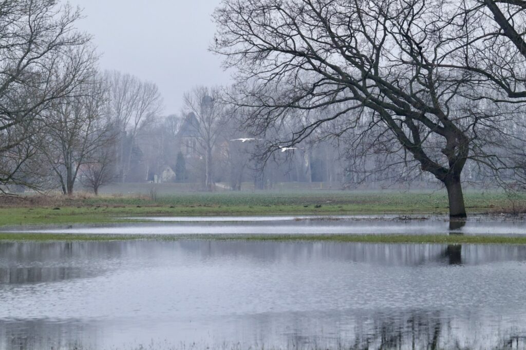Heute ist die Farbe GRAU dominant. In der Elsteraue bei Profen geht das Hochwasser langsam zurück.